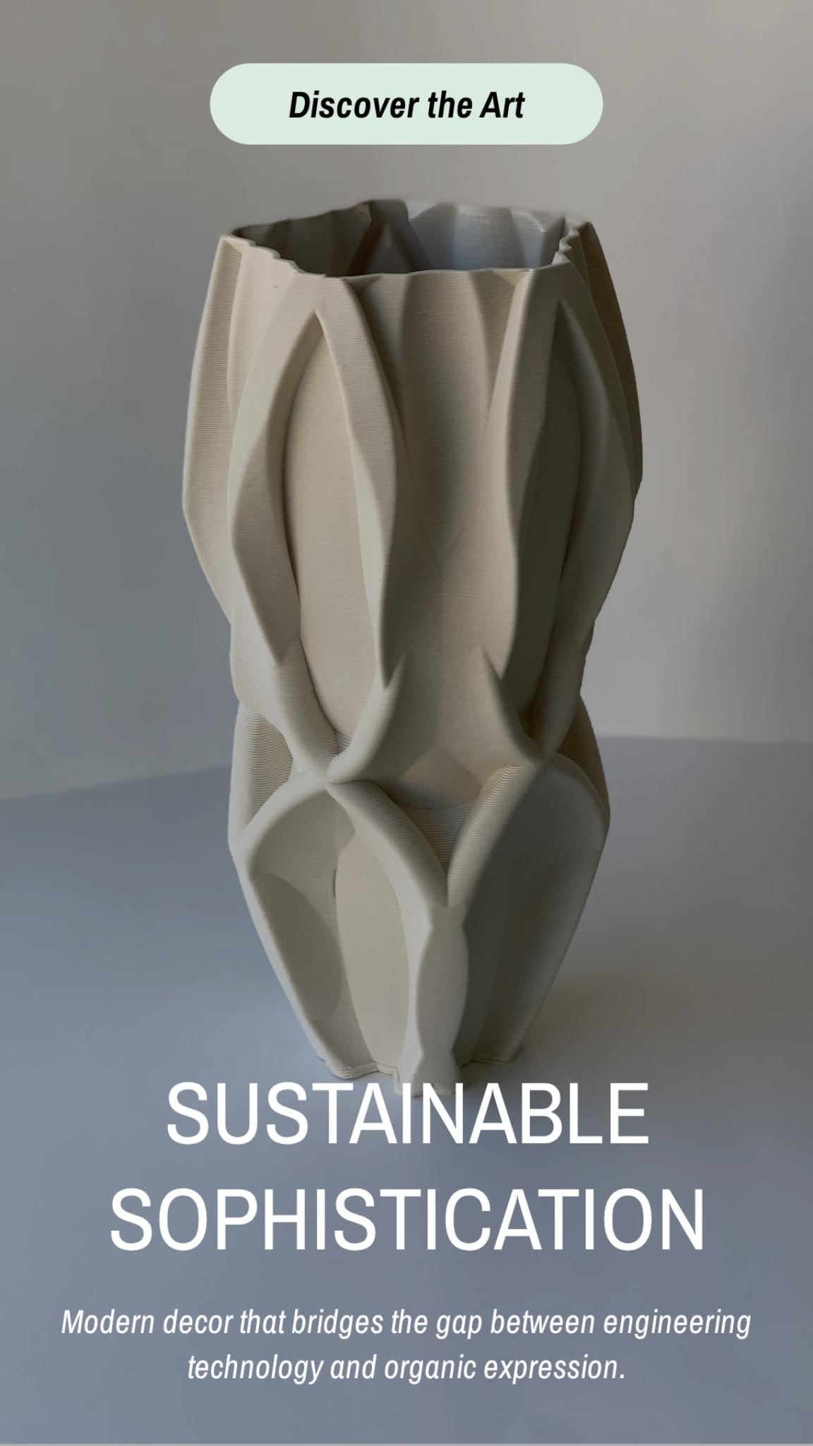 Introducing our exquisite 3D Printed Porcelain Vase – Hand-crafted porcelain form meets modern 3D precision Elevate your space with this unique masterpiece, meticulously crafted using cutting-edge 3D printing techniques. Its delicate porcelain structure showcases intricate details and a seamless blend of modern innovation with timeless elegance. Bring sophistication into your home with a piece that redefines the boundaries of traditional craftsmanship. Limited edition, timeless beauty. The over all height/w is 12 1/2 inches and 6 1/2 inches wide.